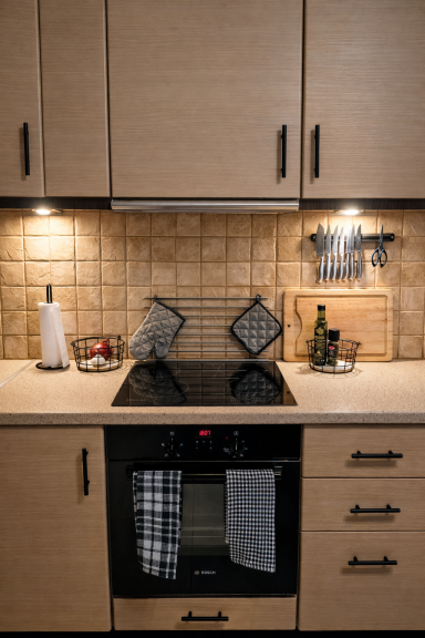 Die stilvolle Alternative zum Tavernenbesuch: Unsere ausgewählte Küchenausstattung bietet Ihnen alle Möglichkeiten, Ihre kulinarischen Ideen frei zu entfalten. Lassen Sie sich auf den regionalen Obst-, Gemüse-, Fisch- und Fleischmärkten inspirieren und genießen Sie die Freude an der eigenen Zubereitung – frisch, mediterran, ganz nach Ihrem Geschmack.