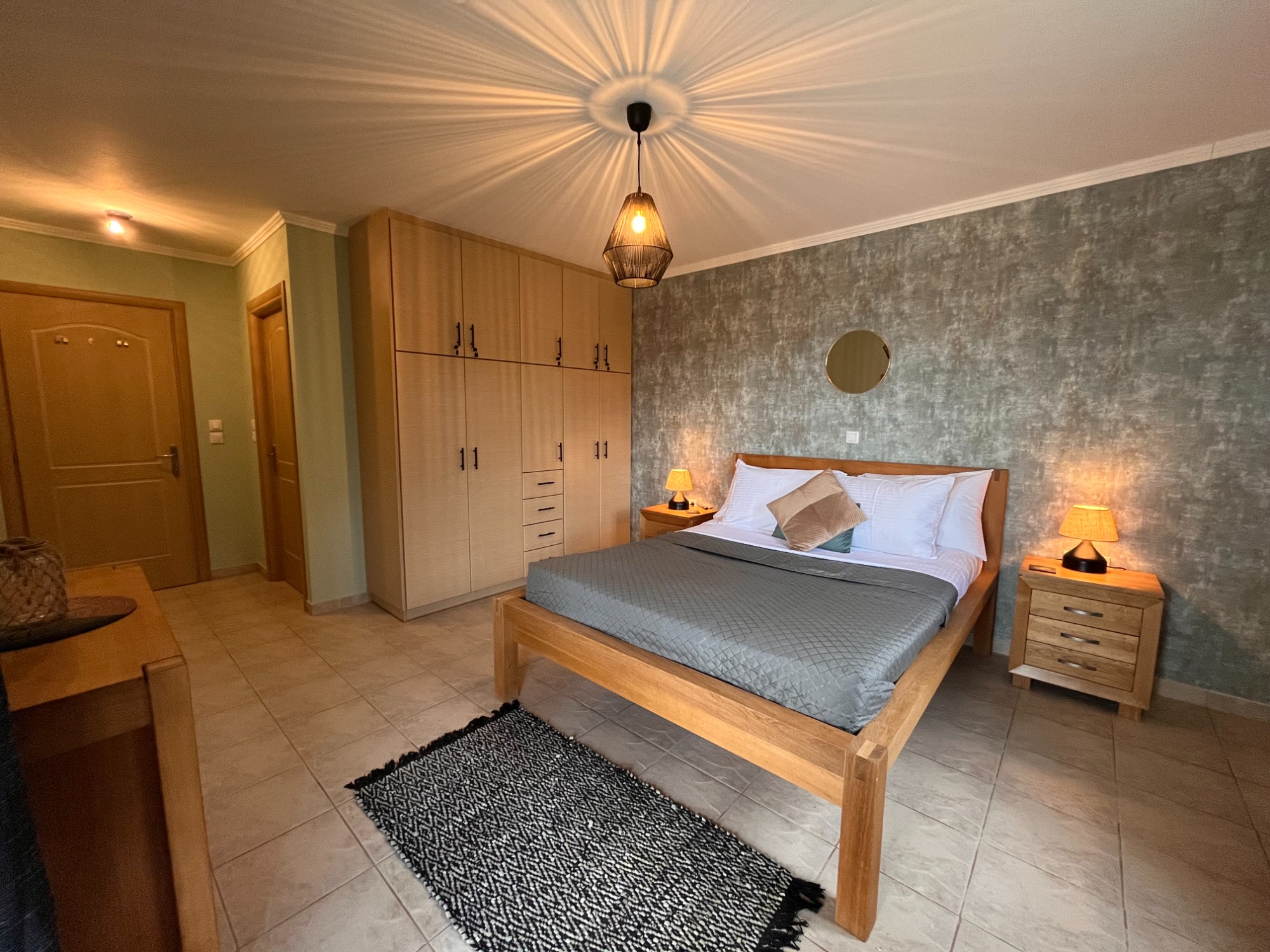 Unser großzügiges Hauptschlafzimmer lädt mit einem komfortablen Doppelbett (160 × 200 cm) zu erholsamen Nächten ein. Das angrenzende, private Badezimmer mit Badewanne bietet zusätzlichen Komfort und Privatsphäre.
