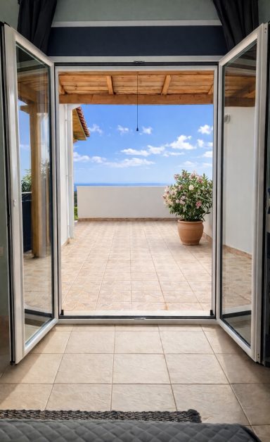 Auch in unserem zweiten Schlafzimmer genießen Sie Komfort und Meerblick. Das gemütliche französische Doppelbett (140 × 200 cm) lädt zu erholsamen Nächten ein. Das angrenzende Badezimmer mit Dusche bietet zusätzliche Privatsphäre und Bequemlichkeit.